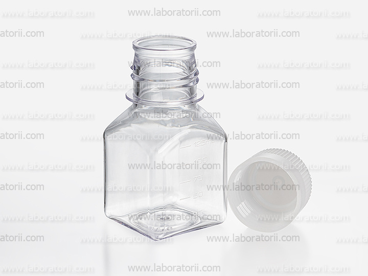 Бутылки для питательных сред 125 мл, с градуировкой, квадратные, стерильные, РЕТG