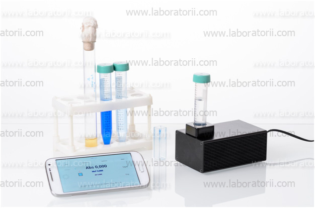 Прибор для измерения поглощения образцов в пробирках (16 мм) и стандартных кюветах (12мм) на 630нм. Прибор управляется с компьютера через интерфейс USB или смартфона по Bluetooth.