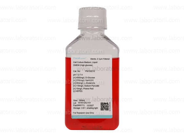 DMEM (с высоким содержанием глюкозы) содержит множество аминокислот, витаминов, неорганических солей и других компонентов для культивирования клеток, но не содержит белков, липидов или каких-либо факторов роста, поэтому продукт следует использовать с сывороткой или бессывороточными добавками.
