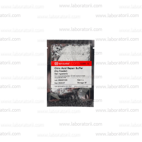 Данный продукт представляет собой сухой порошкообразный цитратный буфер для раскрытия антигена. При растворении в чистой воде получается цитратный буфер с pH 6,0 и концентрацией 10 мМ, готовый к использованию для термического или других методов раскрытия антигена.